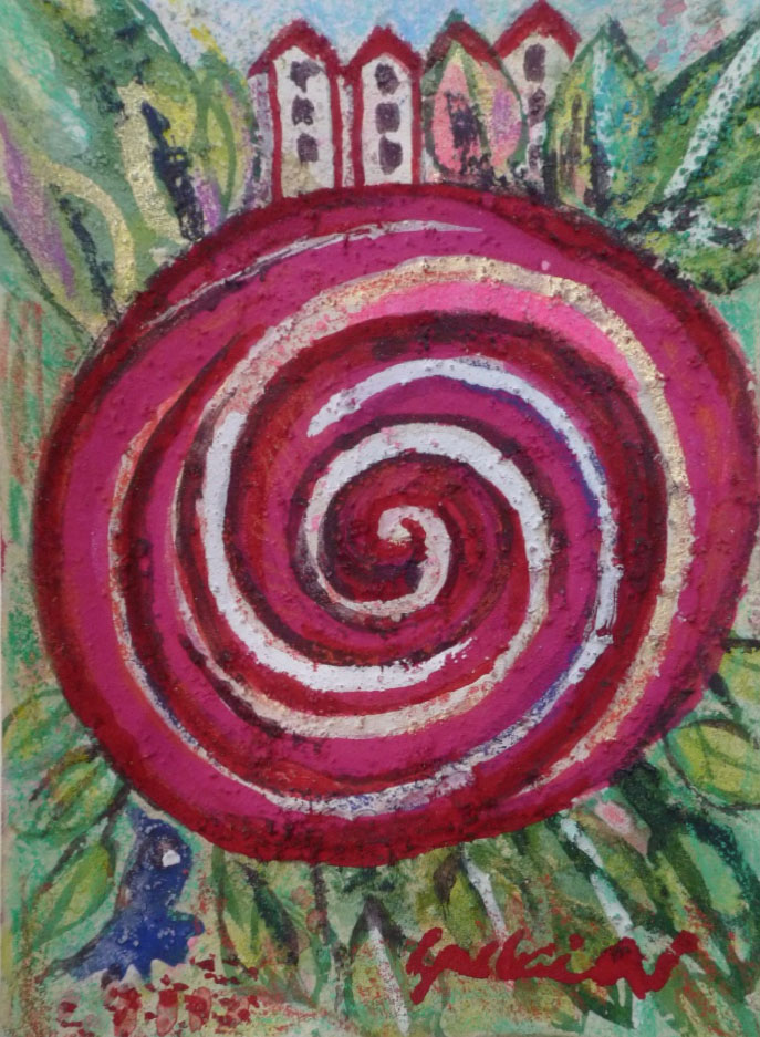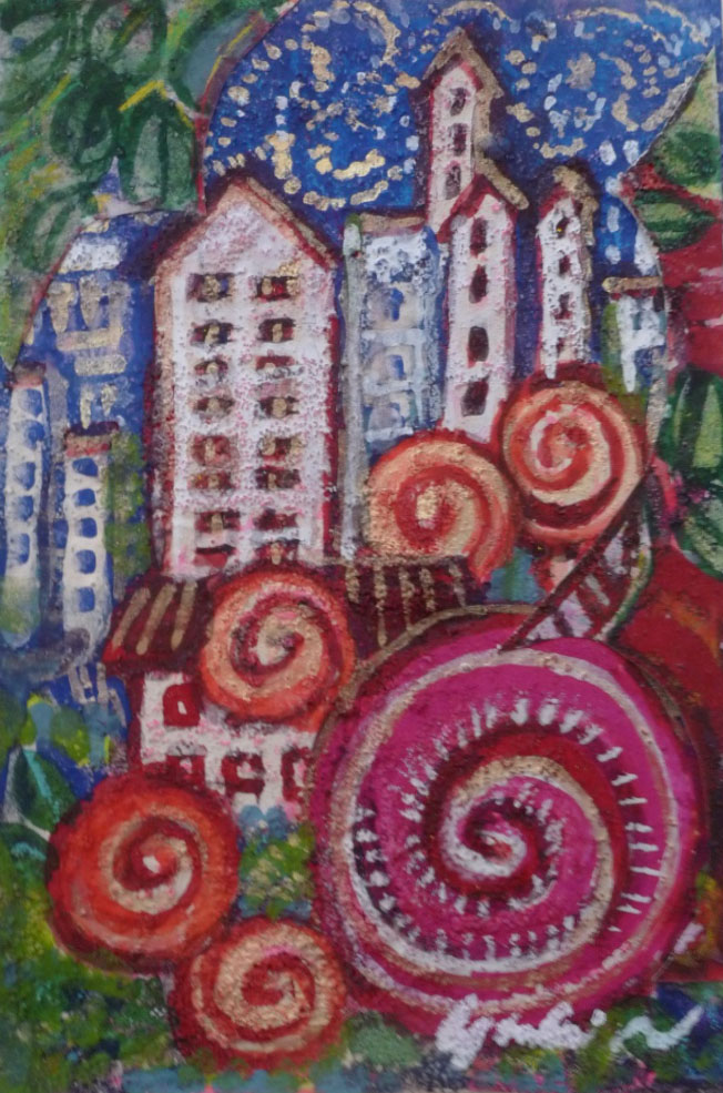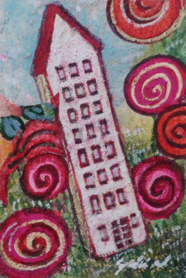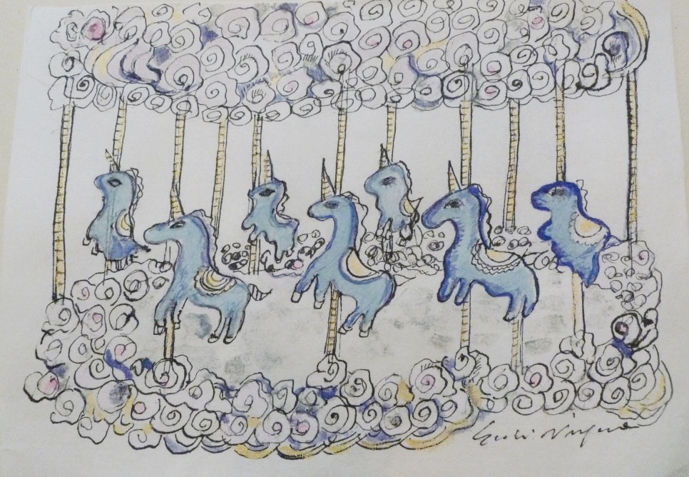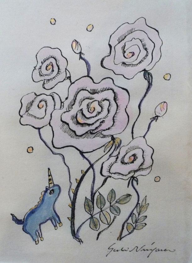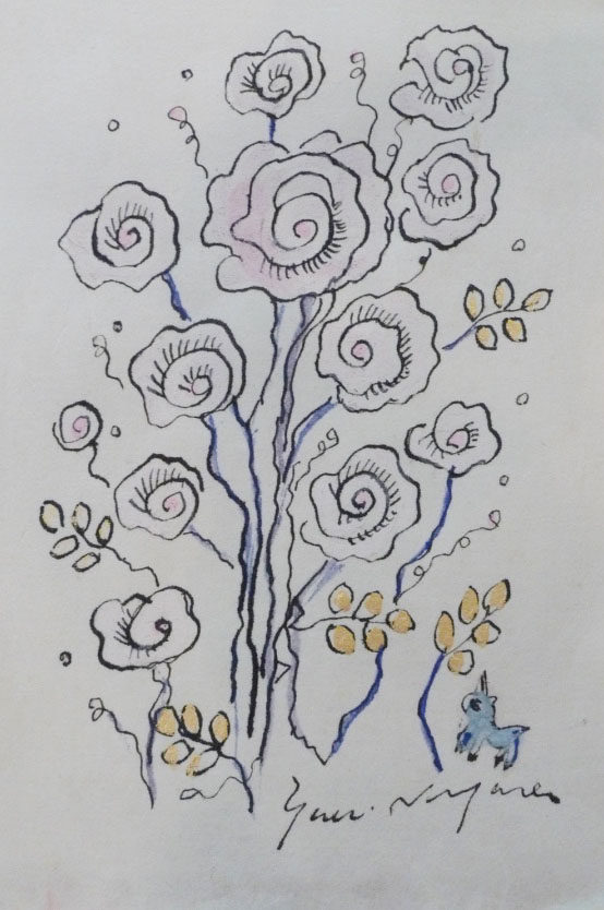 人物、花、街、自然など、それぞれを描いた作品もありしたが、女と薔薇とを主としながらも様々なモチーフが複雑に絡み、溶け合い一体となるかのような構成表現が彼女の真骨頂なのだと思いました。