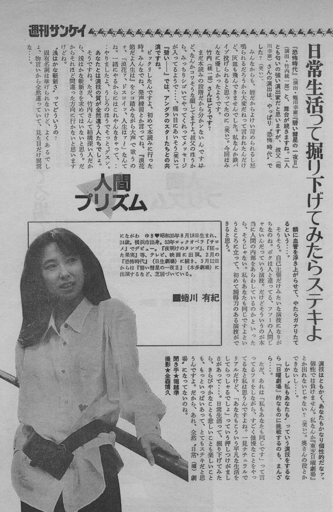 この作品で初めて叔父、蜷川幸雄の演出にふれる。