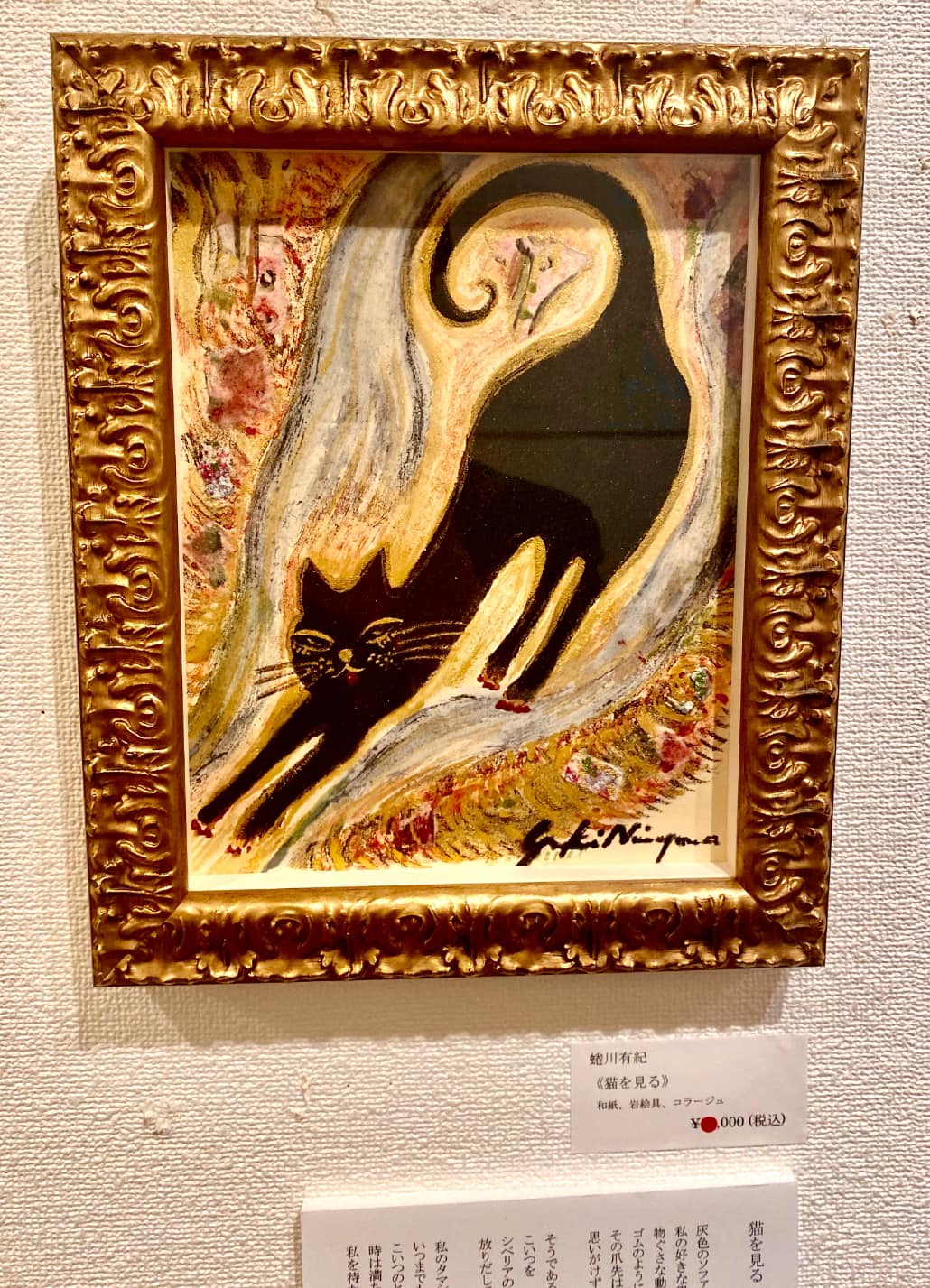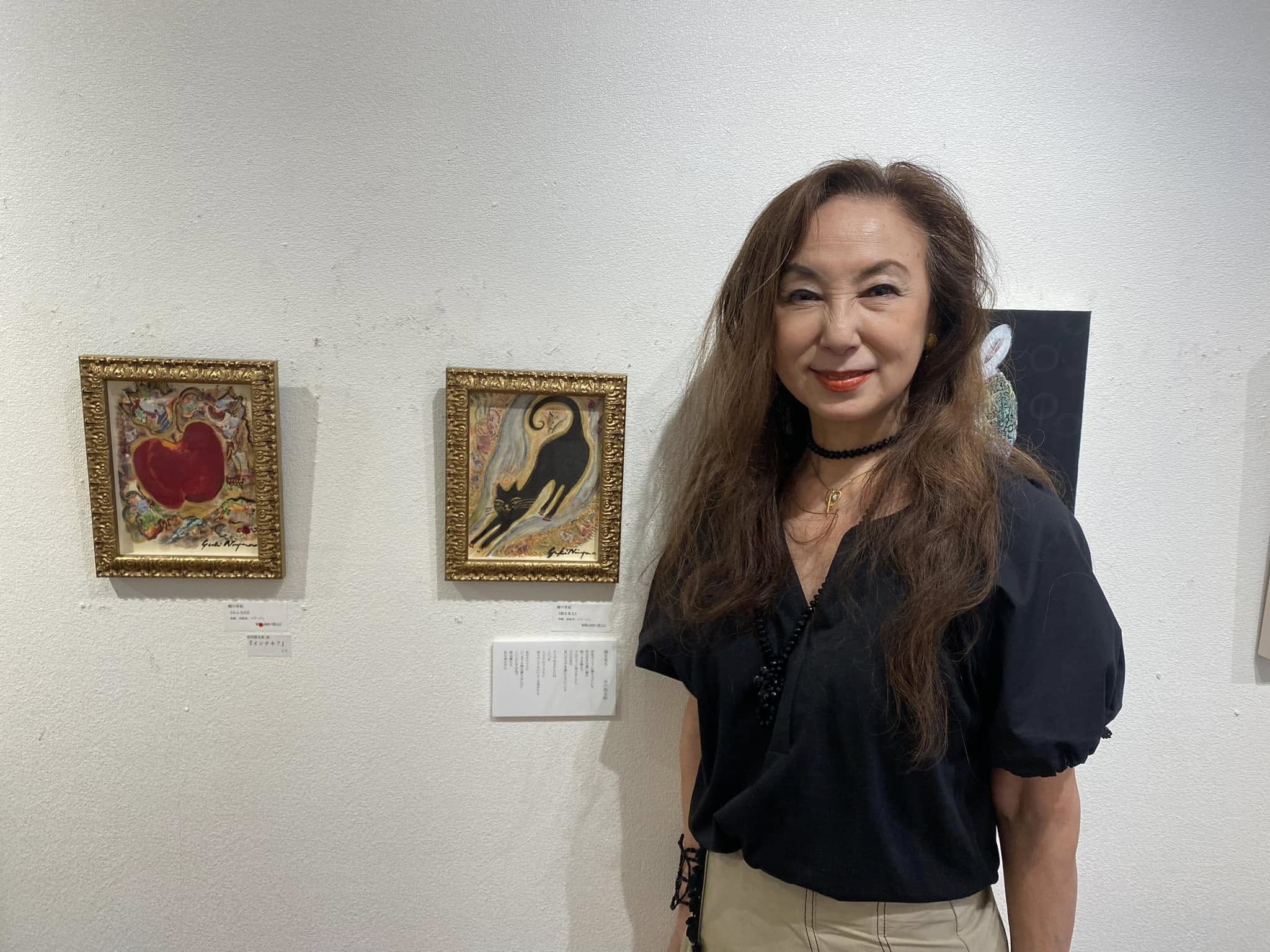スタンランや菱田春草、竹久夢二など黒猫を描いた名作は数多くあります。わたしが今回描いた黒猫は、「物ぐさな動きでゴムのように伸びをしたら、そのつま先が永遠までとどいている」という谷川俊太郎さんの詩をイメージしたものです。