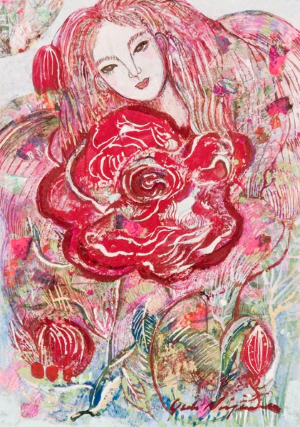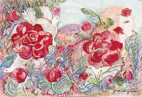 蜷川有紀さんの絵は、ちょっと想像できないほどロマンティックで、豪華絢燗で、しかもセクシーだ。