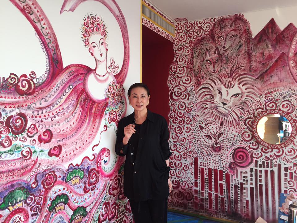 お電話で予約すると私が描いた薔薇天女のお部屋にお泊りいただけます。
