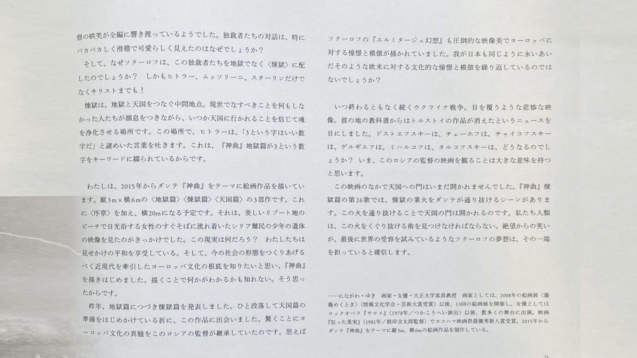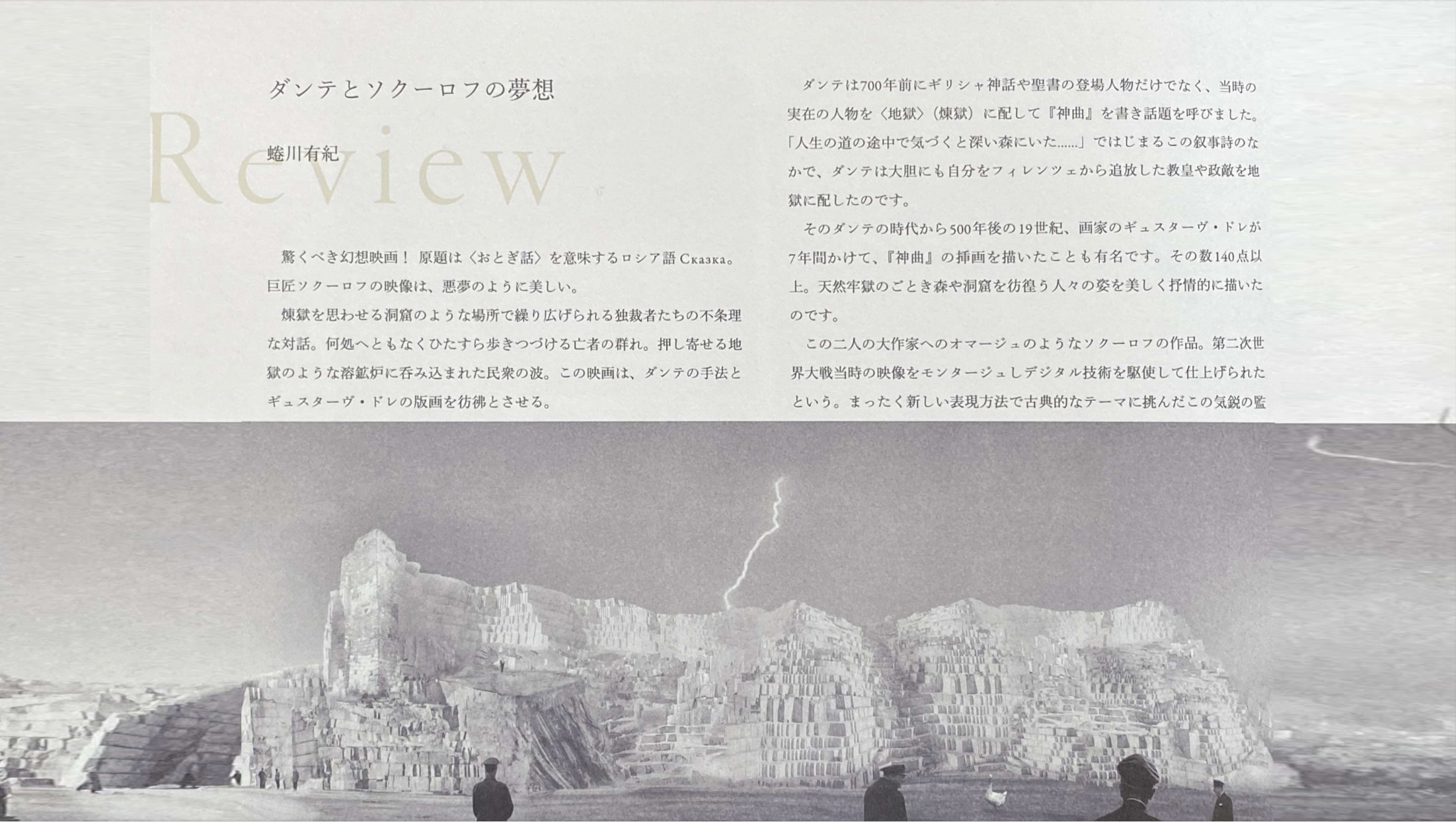 『ダンテとソクーロフの夢想』という文章を寄稿いたしました。