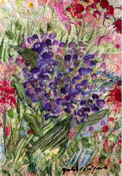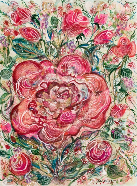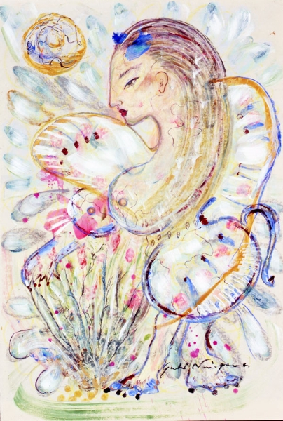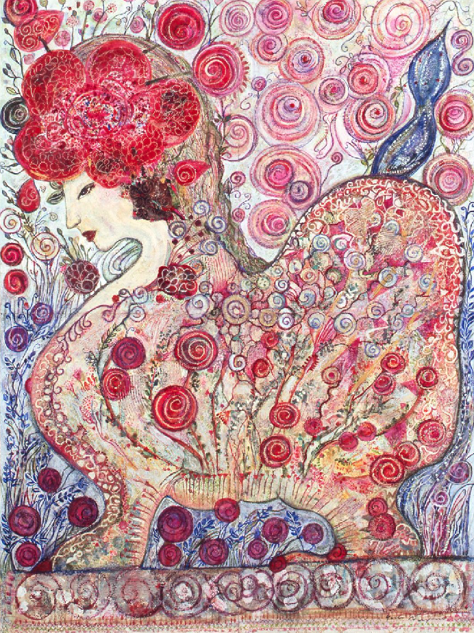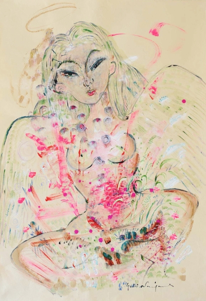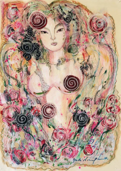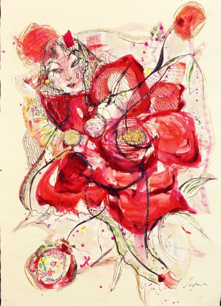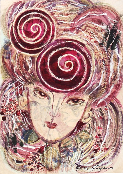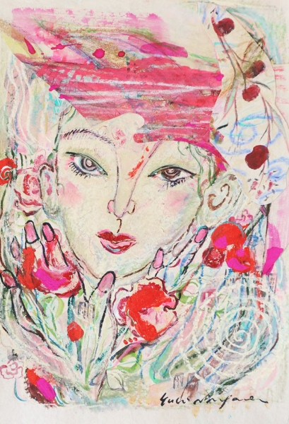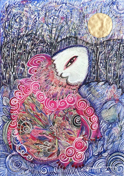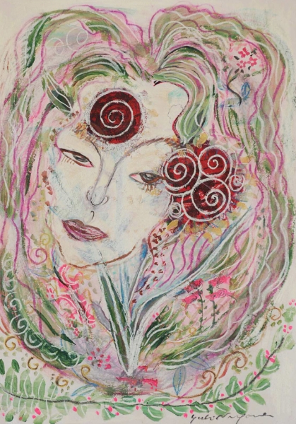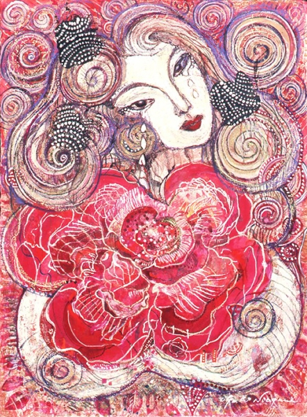 | 「恋するジャンヌ」 和紙 岩絵の具、アクリル、パステル 75×55 2008年 |